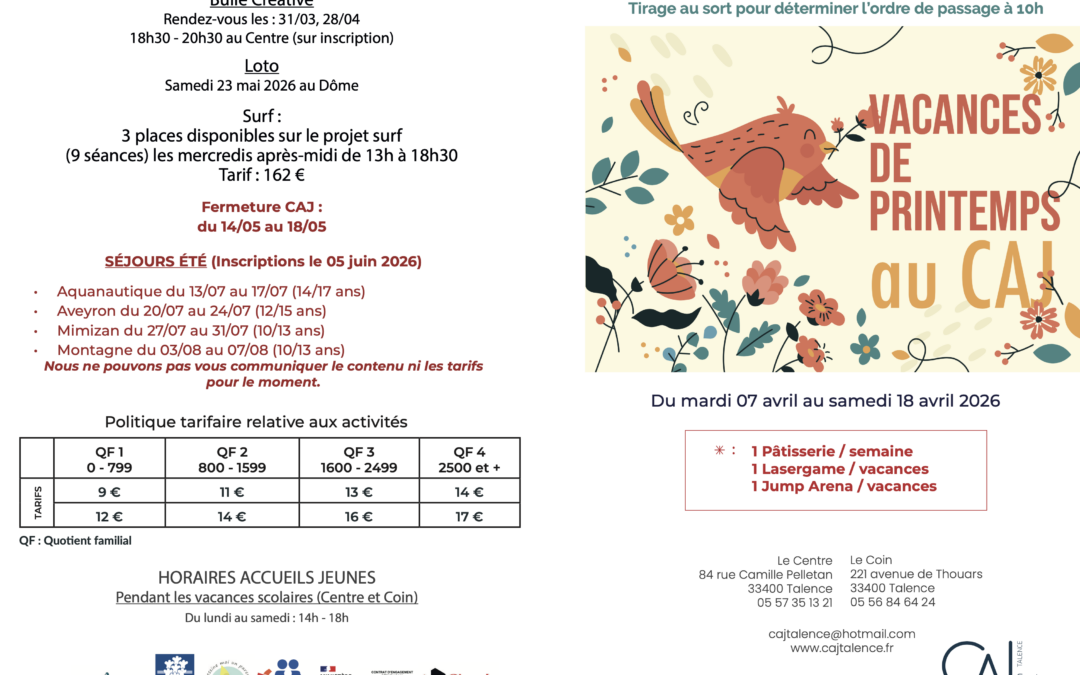 • Vacances d’avril 2026